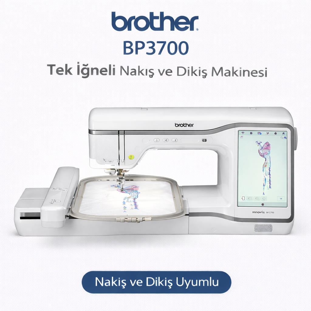 Brother BP3700, nakış ve dikiş özelliklerini tek makinede birleştiren, ev kullanıcıları ve butik üretimler için geliştirilmiş çok yönlü bir modeldir. Geniş dokunmatik ekranı ve yüksek nakış alanı sayesinde yaratıcı projeler için ideal çözümler sunar.